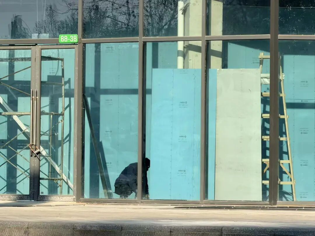 建筑主体虽已成型ღ★✿,深橘色的外立面搭配大面积玻璃的设计颇具现代感ღ★✿,但墙体局部有污渍残留ღ★✿,部分玻璃也存在划痕损坏的情况ღ★✿。